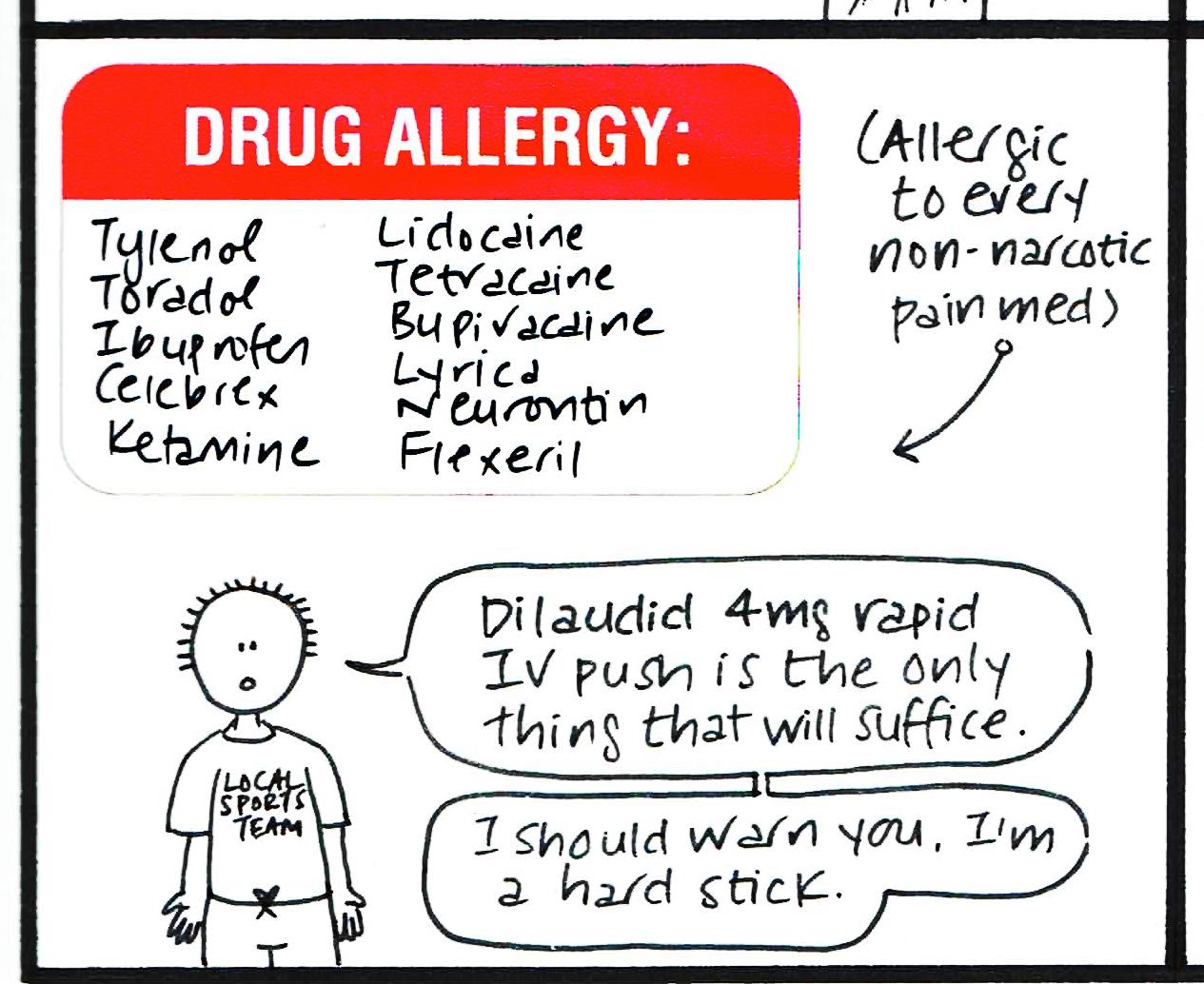 Anyway, it's many years later now, and I am old, and semi-responsible, so I feel the need as an attending to say: Allergies are real, and can be serious. Listen to your patients. Use common sense, but respect the histories they are giving you.