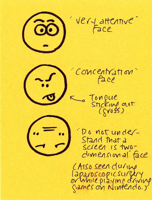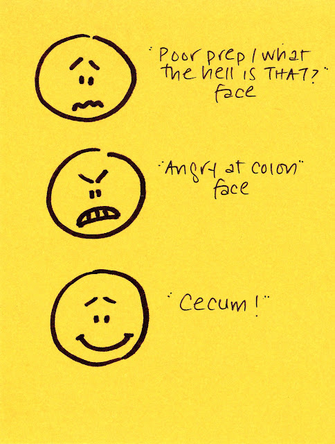I did try to do a sort of quick and dirty YEARS ago, with this "colonoscopy face" comic...