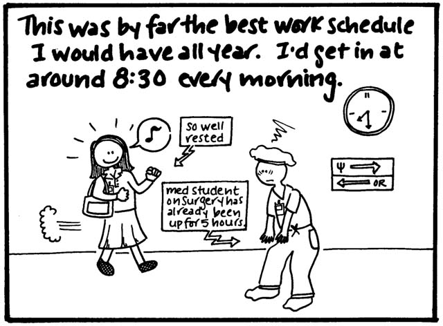 OK, I think this is the last of this throwback series. It also happens to be the first "Scutmonkey" comic I wrote (even before "The Twelve Types of Med Students," even*), and I finished it about a month before I graduated from med school. It seems that the Wayback Machine doesn't archive every last image in a deep side branch of your main blog, which is why half the panels are kind of greyscale and janky (photos of a photocopy, you know). But hopefully it's all still legible.